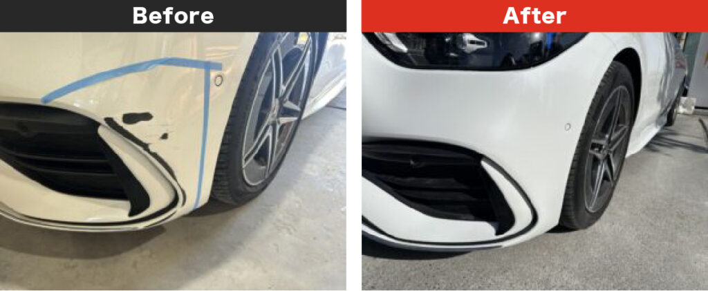 メルセデス・ベンツ Cクラス 左フロントバンパーの修理事例